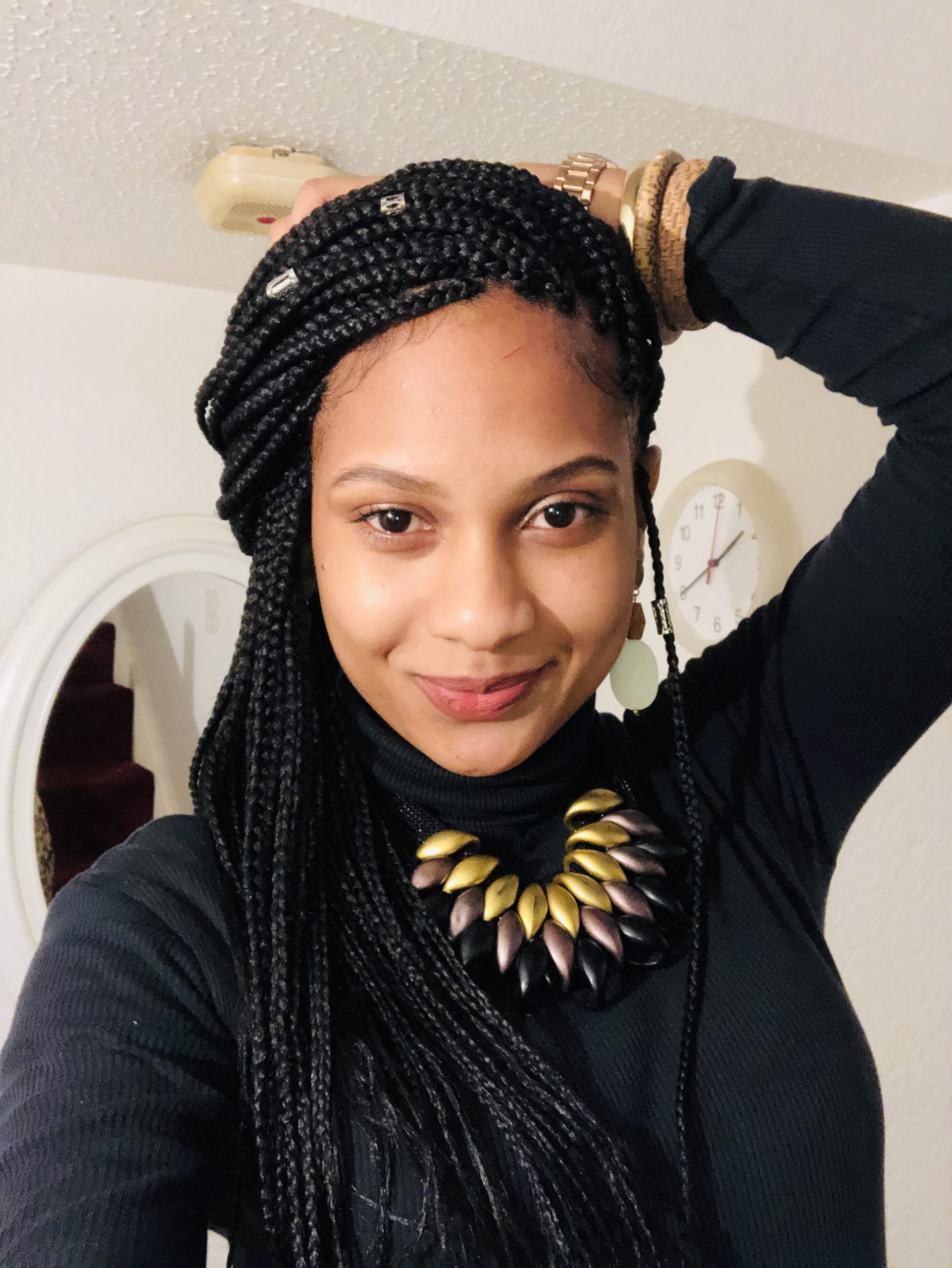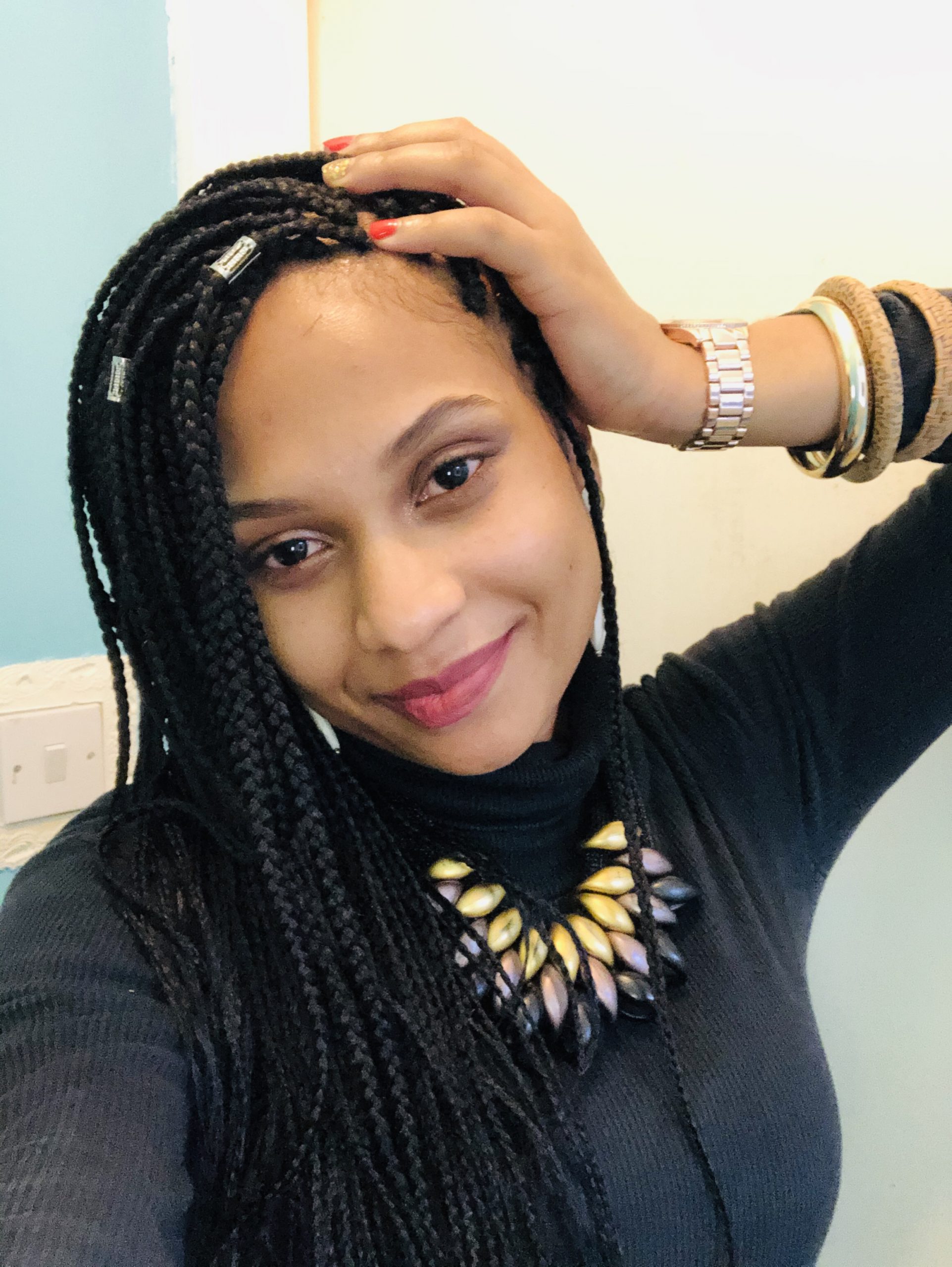 I had box braids installed 4 weeks ago and some folks did ask me how I wash my hair whilst braided. I know some people just decide they will not wash their hair for the entire time they have their braids on but I’m not about that life! I had a plan in mind. Below some pictures of my box braids freshly done!